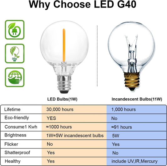Outdoor String Lights, 97FT Patio Lights with 49 G40 Shatterproof LED Bulbs(1 Spare), Waterproof Lights String for outside Backyard, Porch, Bistro, Party, Camping, Garden Gathering
